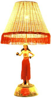Classic Lei Dancing Hula Girl Lamp Add a delightful old Hawaii atmosphere with these classic vintage dancing hula lamps. Turn on the motion and watch her move from side to side. Made with poly resin. Separate electric switch for motion/dancing. A bamboo Hawaiian lamp shade complete with fringed skirt makes these lamps a must have for the island home! Great as gifts!